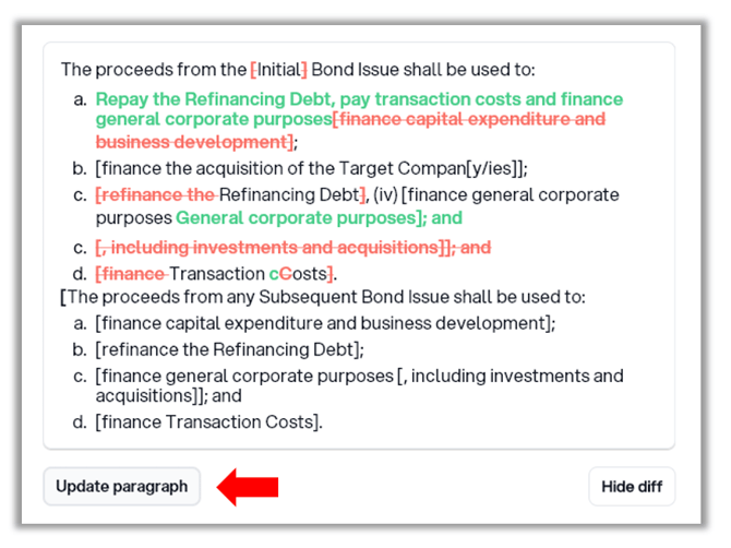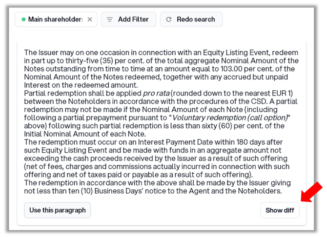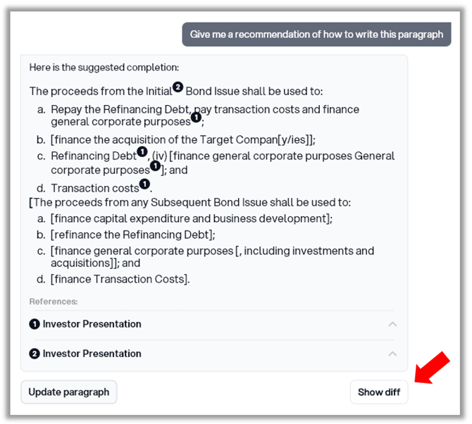 2. To see the difference between the paragraphs, click Show diff.