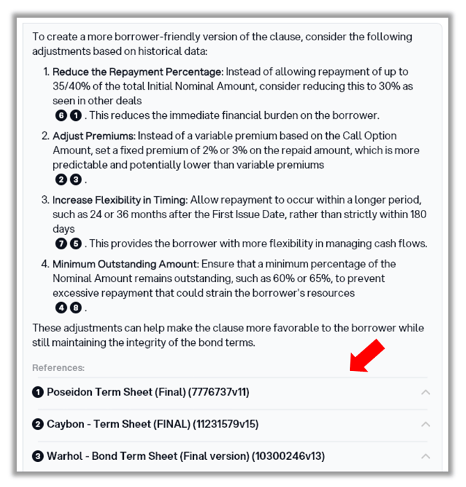 Each answer you receive from Aloi includes references that allow you to source-check and validate the information it analysed to generate the suggestion(s).