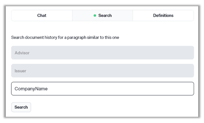 The search pane is used to search in your knowledge bank for similar paragraphs. To do that, follow the steps described blow.